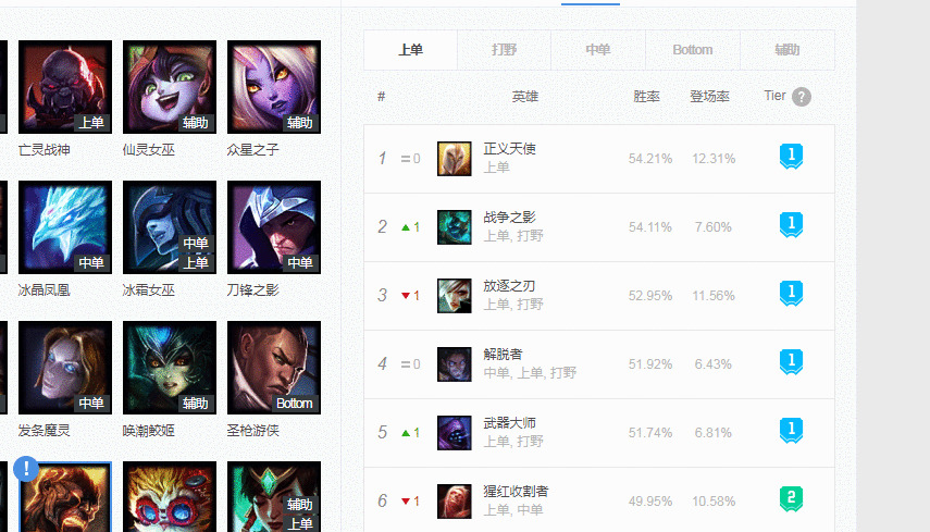 不只是T级高,胜率也很是不错,人马以54.11%胜率排名上单第二,仅次于天使这个英雄。其实在9.6版本之前,人马的胜率并不低,但利用率一直都很低,只有少部门的专精玩家在利用。但自从9.6版本更新之后,人马的胜率和利用率就在猖獗晋升,高速晋升的利用率,再加上超高的胜率,这根基上可以说明,上单人马是很容易上手的英雄,许多玩家在刚上手的时候就能打出不错的结果。